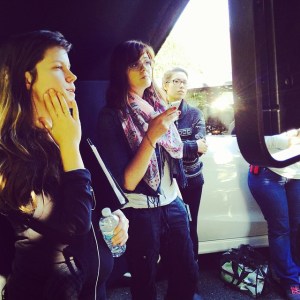 Brianne at the director’s monitor on the set of “Beat Around the Bush” (2014)
